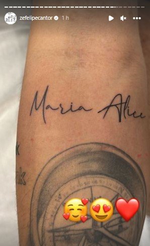 Em maio, Zé Felipe realizou duas novas tatuagens, desta vez o cantor decidiu perpetuar os nomes das filhas Maria Alice e Maria Flor, fruto de seu relacionamento com Virginia Fonseca.